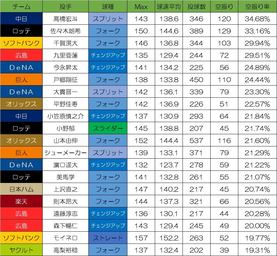 【速報】中日・高橋宏斗(19)のスプリット、現在のNPBで最も空振り率が高い球種だったwwwwwww