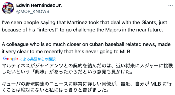 I've seen people saying that Martínez took that deal with the Giants, just because of his "interest" to go challenge the Majors in the near future.