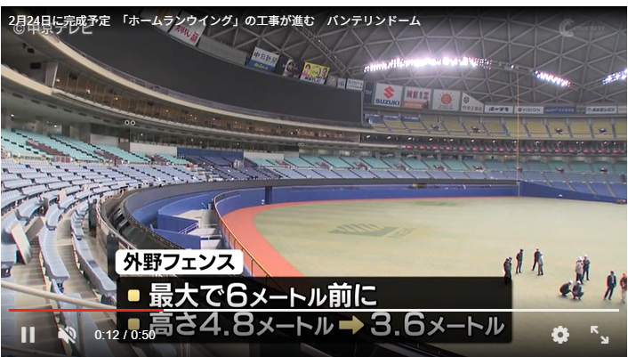 バンテリンドーム、ホームランウイングで思った以上に狭くなりそう
