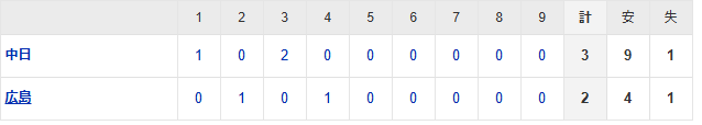 【試合結果】 3/7 中日 3-2 広島 松木平5回1失点 福永先制打、田中が3安打猛打賞【オープン戦】
