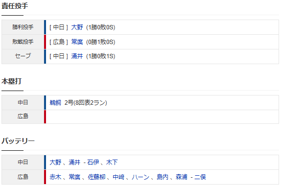 【試合結果】 3/8 中日 8-1 広島 快勝!大野涌井1失点リレー 打線13安打、鵜飼に一発!【オープン戦】